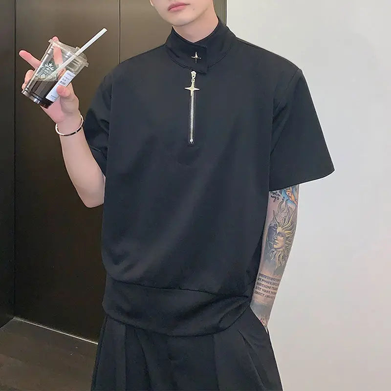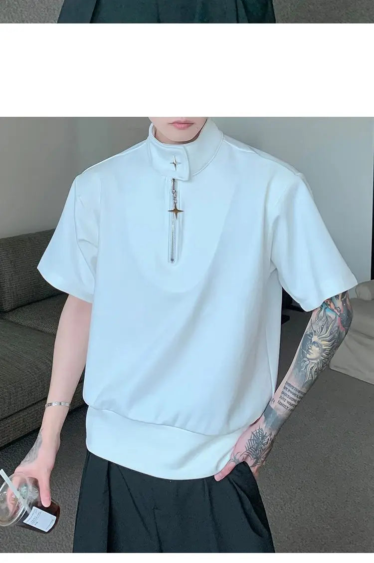 Riolio Niche Stand-up Collar T-shirt Men Polo Shirt Summer Loose Short-sleeved Top T-shirt