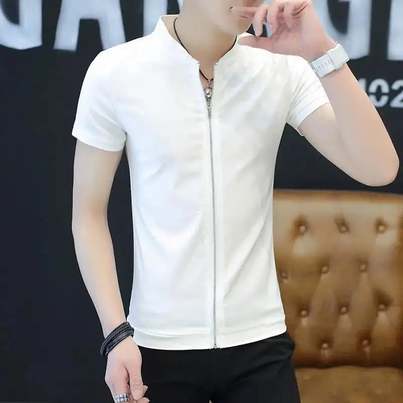 Riolio Short-sleeved T-shirt Men Korean Style Slim Ice Silk Summer Thin Cardigan Top