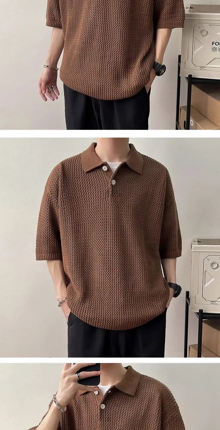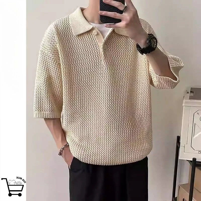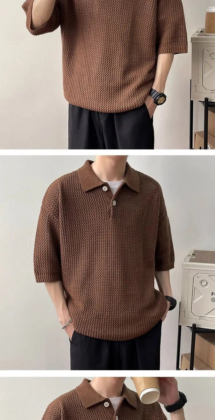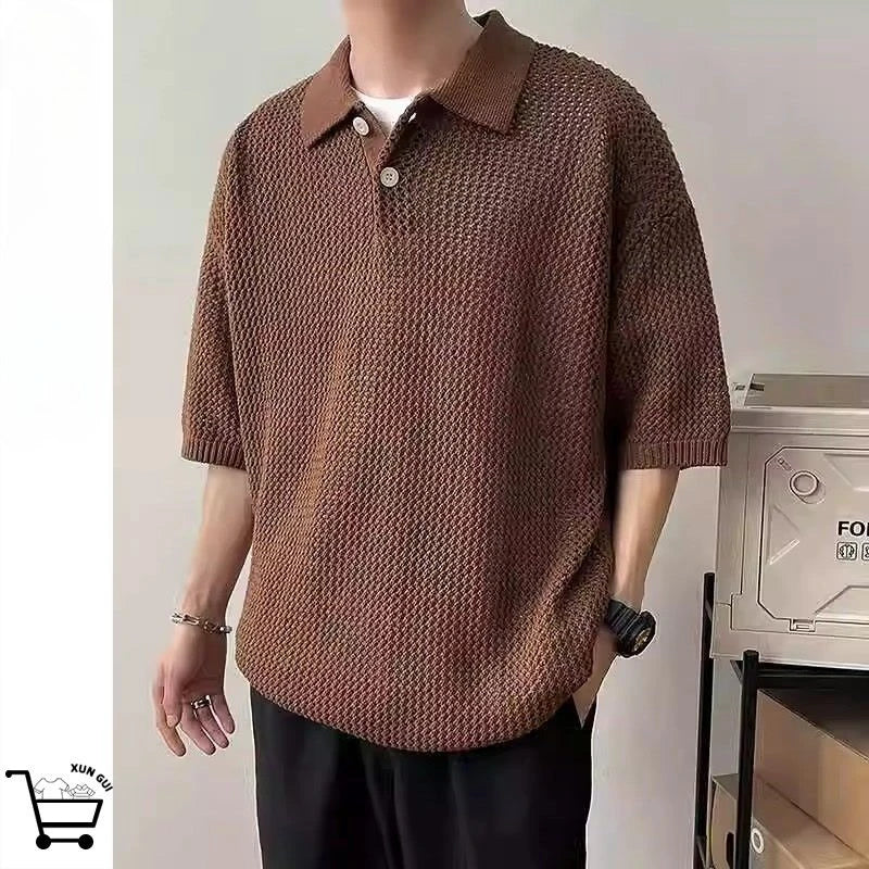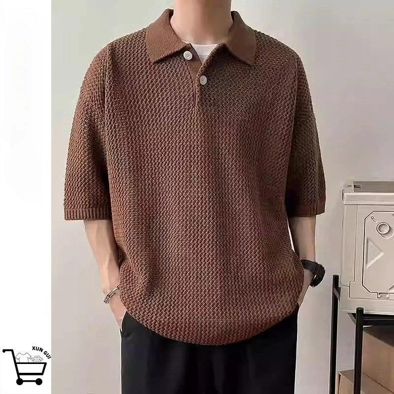 Riolio Summer Trendy Men and Women Hip Hop Knitted Polo Shirt American Couple Loose Retro Korean Personalized Casual T-shirt Top y2k