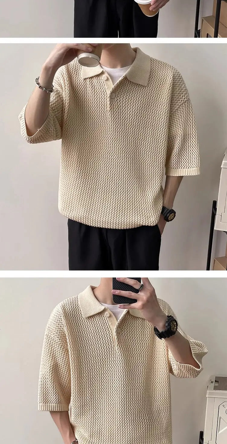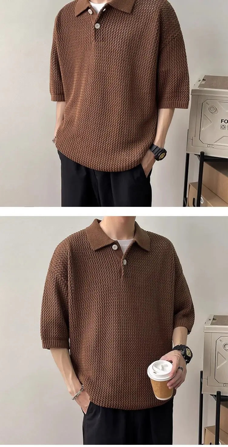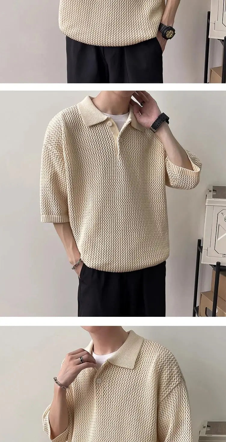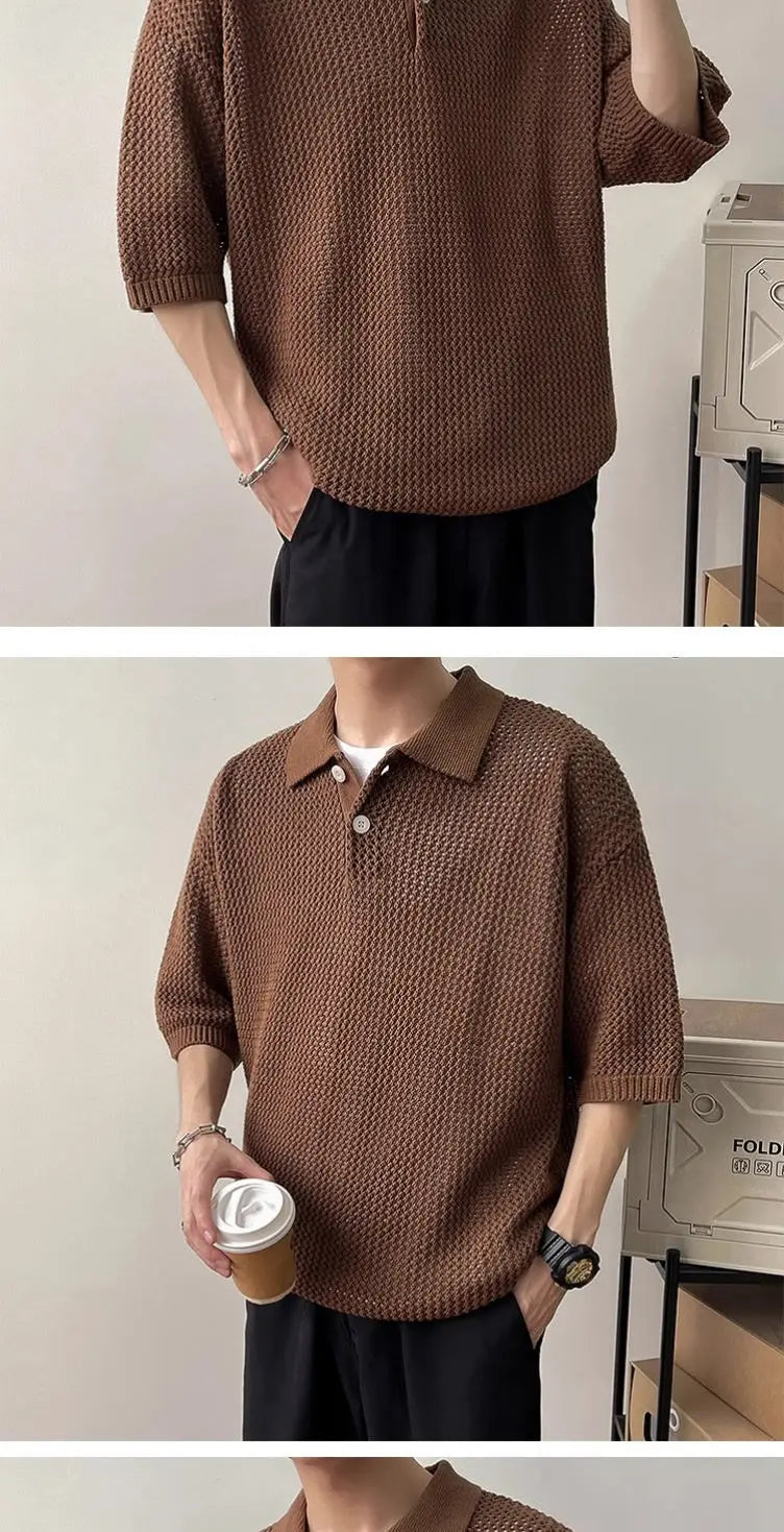 Riolio Summer Trendy Men and Women Hip Hop Knitted Polo Shirt American Couple Loose Retro Korean Personalized Casual T-shirt Top y2k