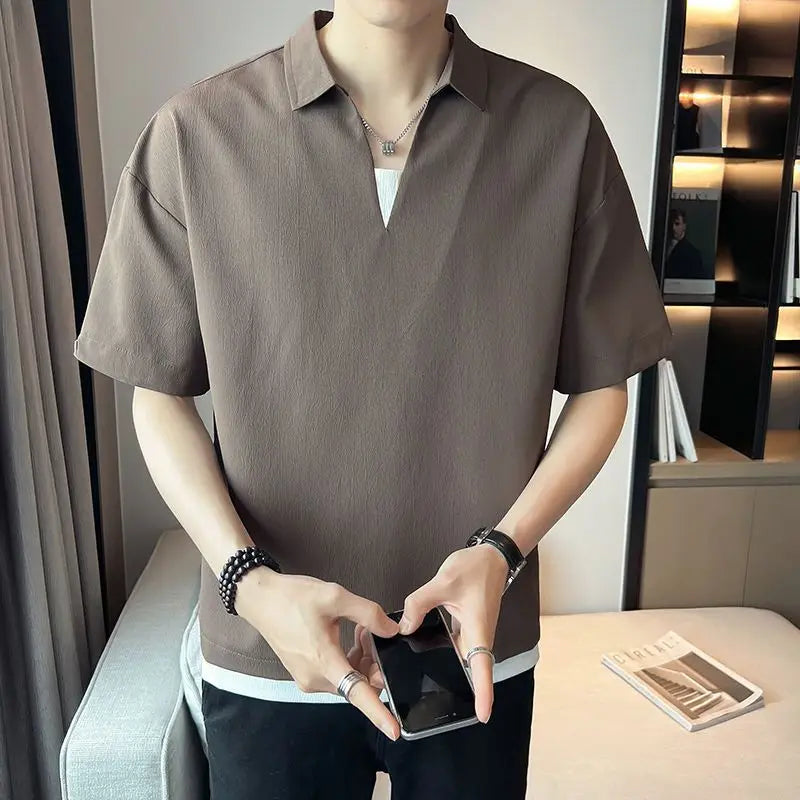 Riolio V-neck Solid Color Summer Simplicity All-match Men's Clothing Fashion Casual New Short Sleeved Black White Loose T-shirts Top