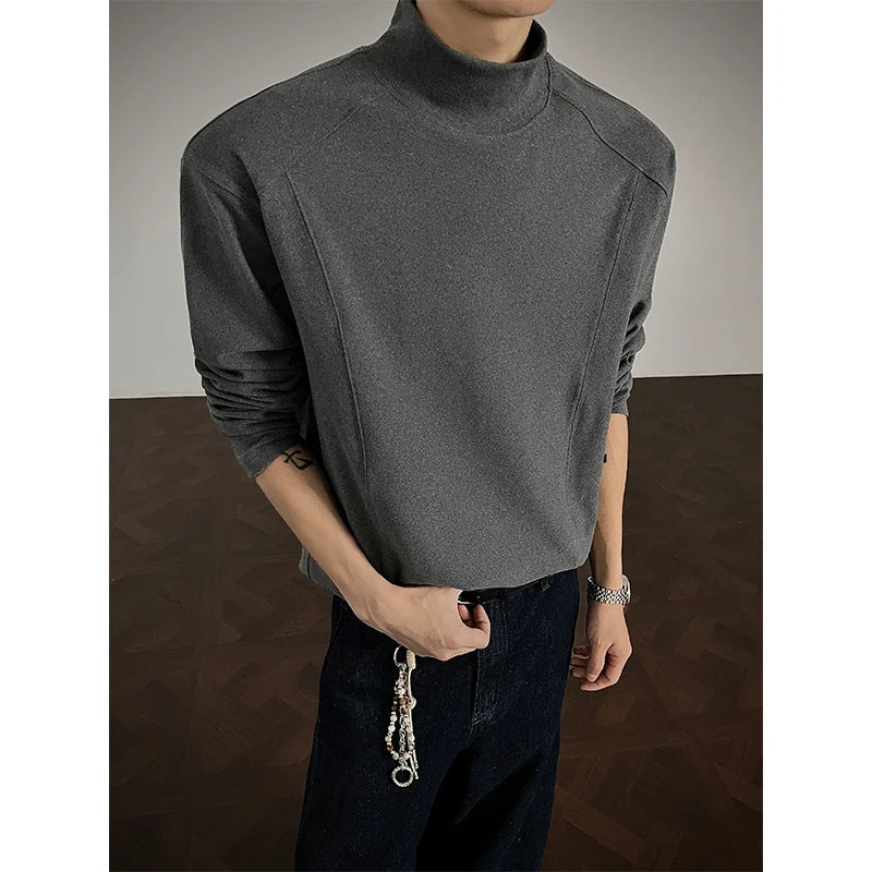 Riolio Winter Thick T-shirt Men Warm Casual High Neck T Shirt Men Streetwear Korean Loose Long Sleeved T-shirt Mens Top Large Size 5XL