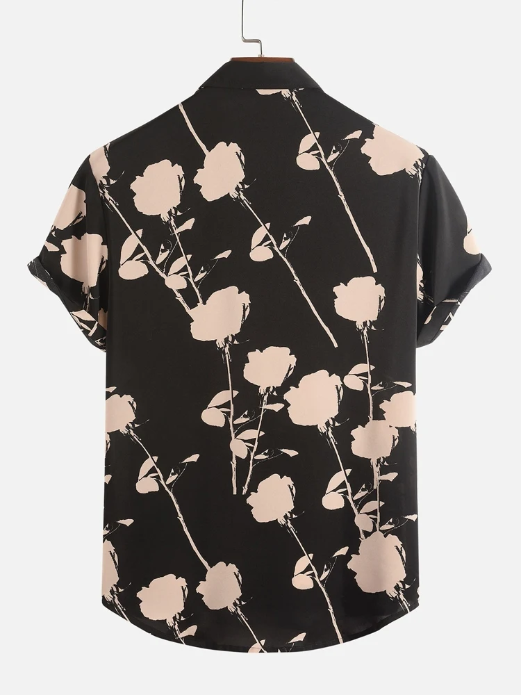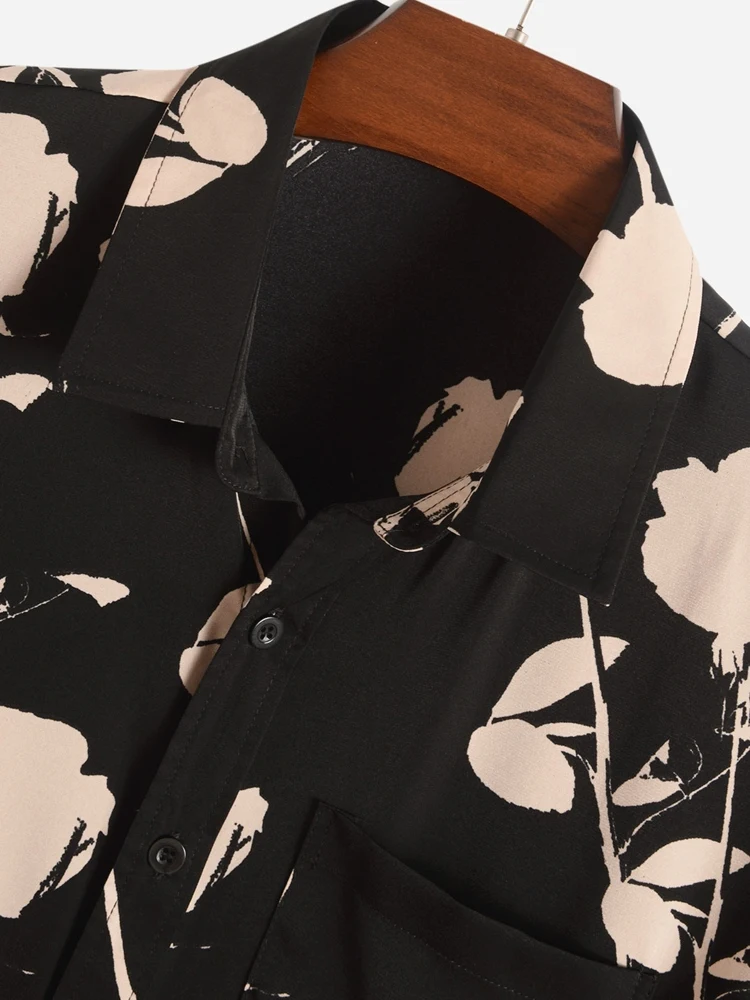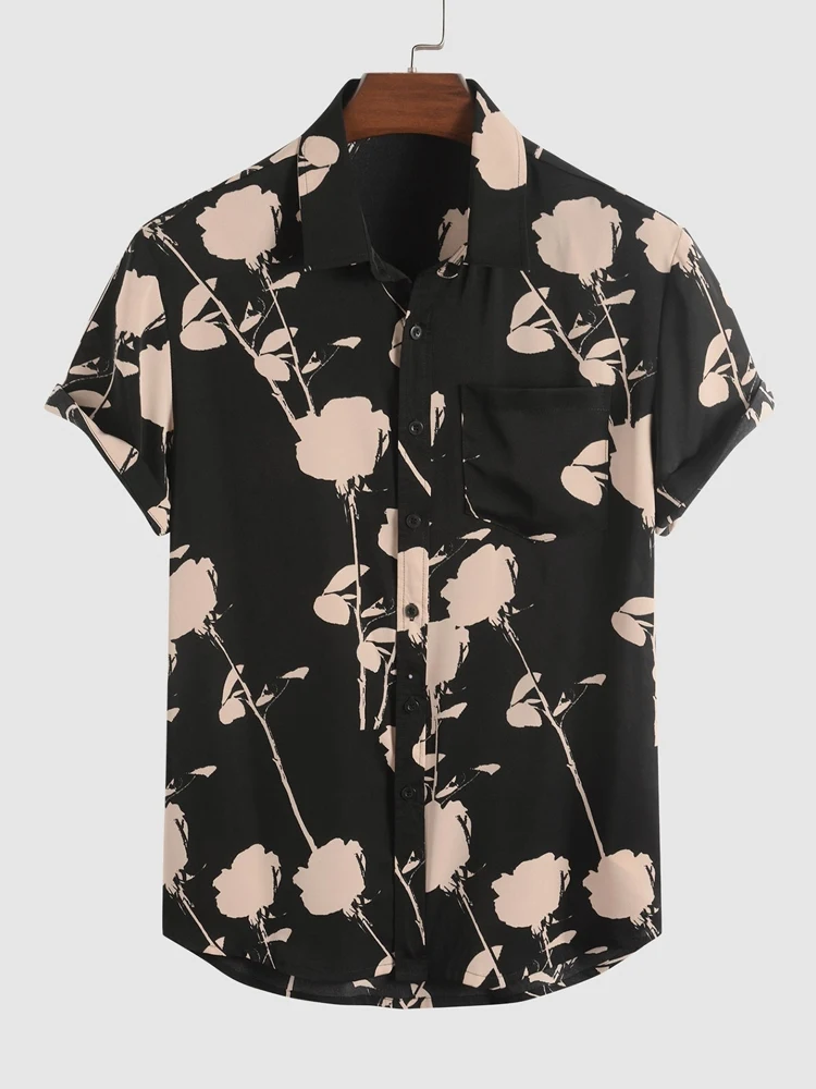Riolio Shirts for Men Flower Printed Short Sleeve Turn-down Collar Shirt with Pocket Casual Streetwear Essential Tops