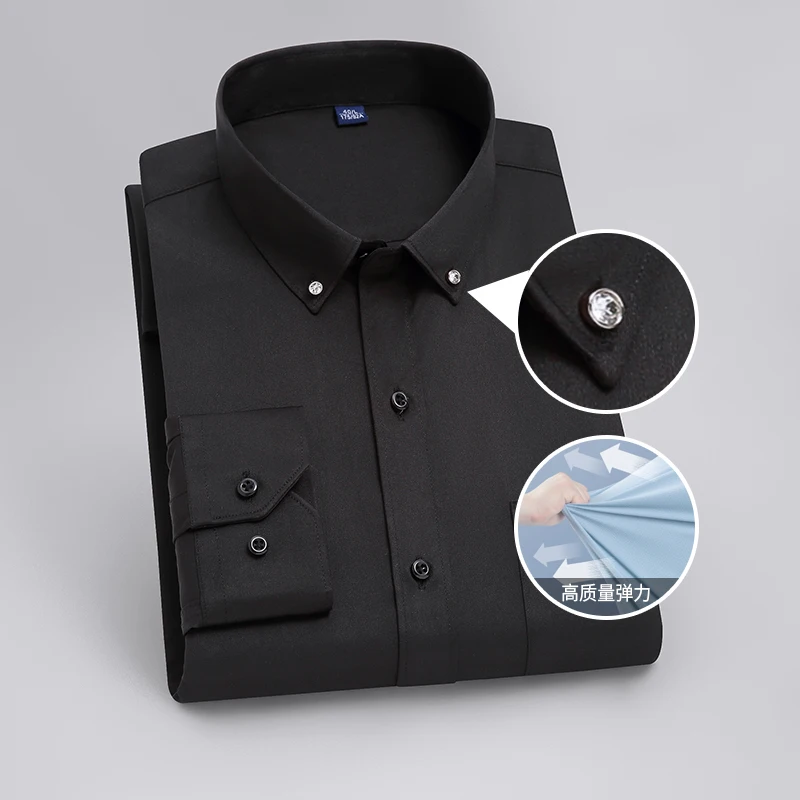 Riolio Classic Men's Business Dress Shirts Casual Solid Button Down Wrinkle Resistant Non-iron Business Social Black AEchoice