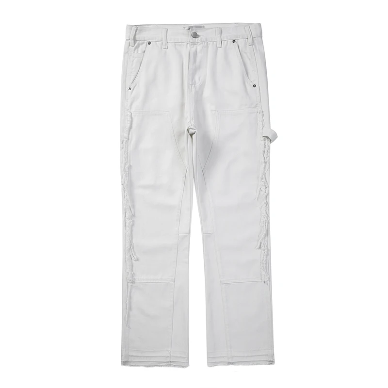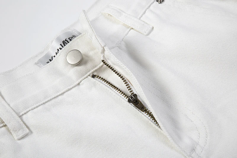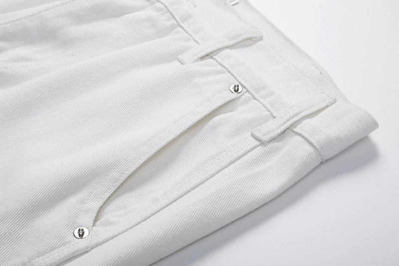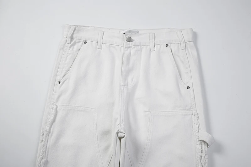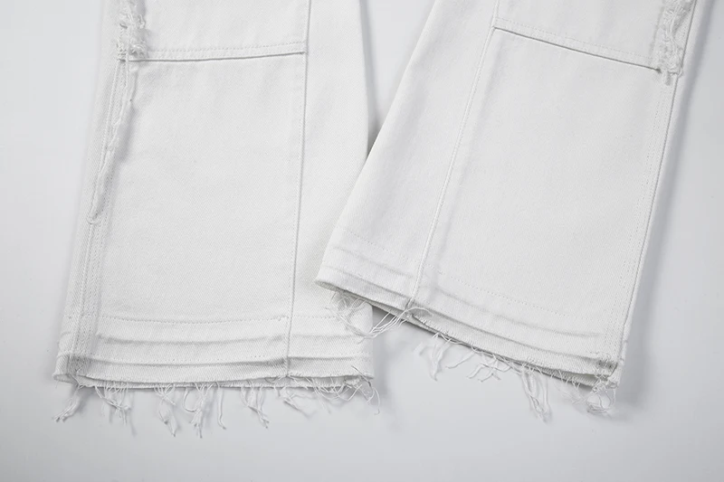 Riolio Hip Hop White Straight Ripped Casual Mens Jeans Pants Both Side Tassel Wide Leg Streetwear Denim Trousers Oversized