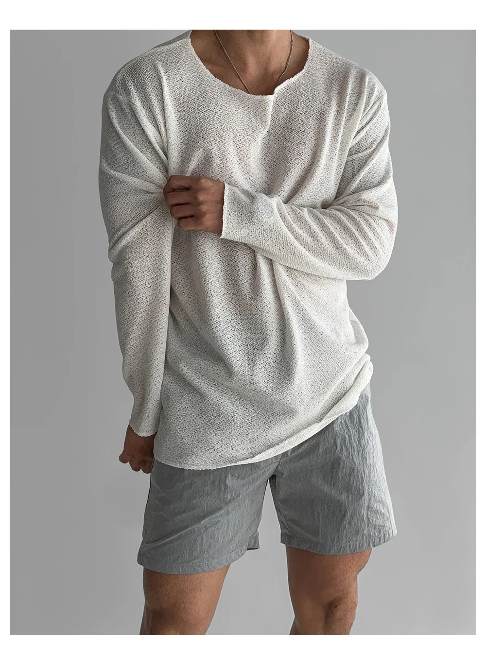 Riolio Lightweight Breathable Sunscreen Blouse Long-sleeved Knitted T-shirt for Men's Summer American Style Casual Loose