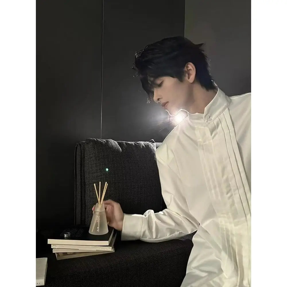 Riolio Spring New Niche Shirt Deconstructed Stand Collar Long-sleeved Shirt Men's Mature Elegant Youth Design Feel Loose Casual Blouse