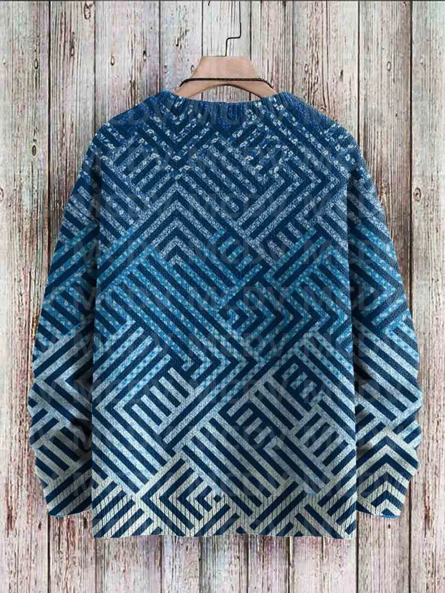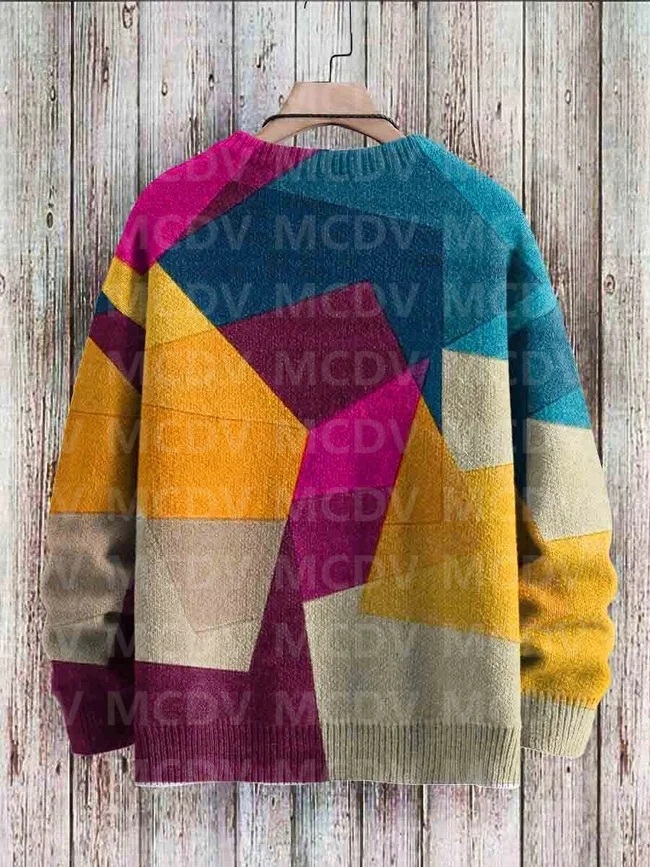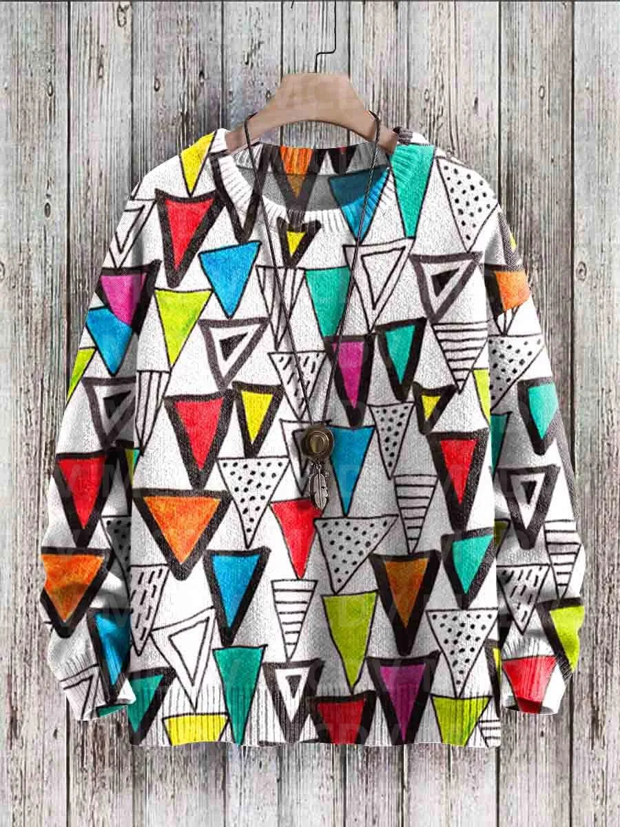 Riolio Vintage Geometry Art Print Casual Knit Pullover Sweater Women For Men Sweater